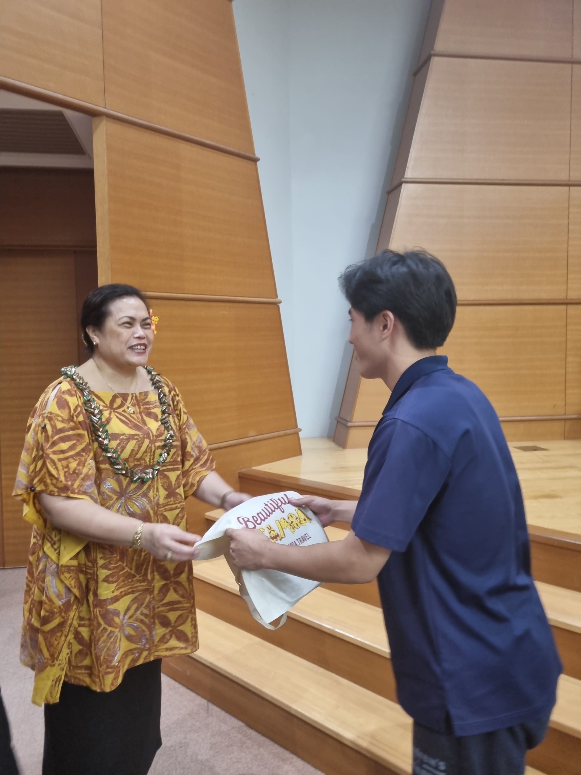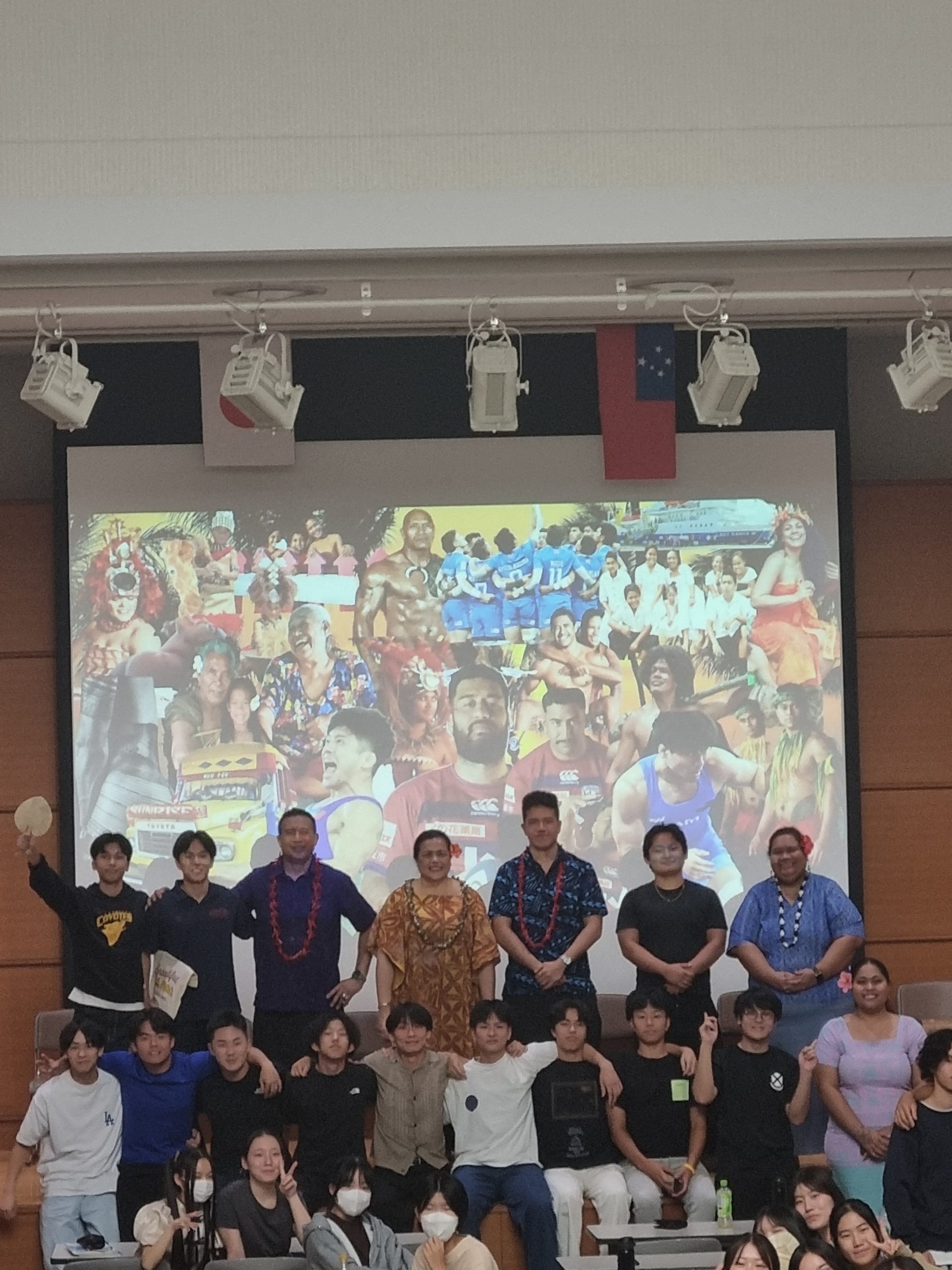The program featured remarks by H.E. Faalavaau Perina Sila-Tualaulelei, Ambassador of Samoa, and presentations on Samoa’s government, economy, education system, and fa’aSamoa by Embassy officials. Students also learned about Samoa–Japan relations and explored Samoan culture through interactive language and dance sessions.